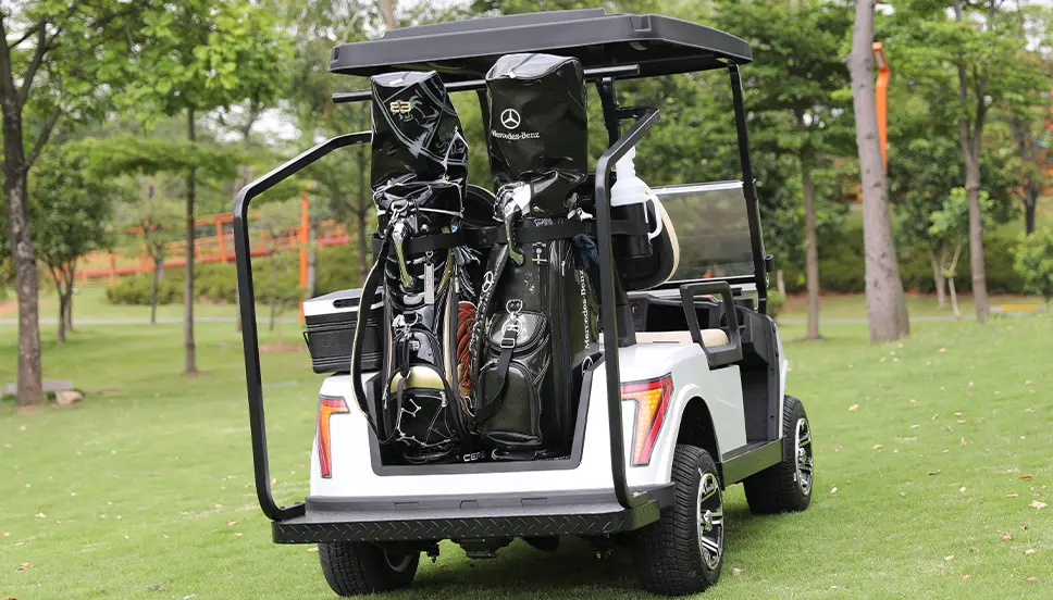 The integrated safety handles offer practical support for caddies, enhancing both efficiency and safety on the course. By stabilizing the ride and improving handling, they reduce fatigue and the risk of accidents. This thoughtful design upgrade contributes to a smoother, more professional golfing experience for players, staff, and course operators alike.