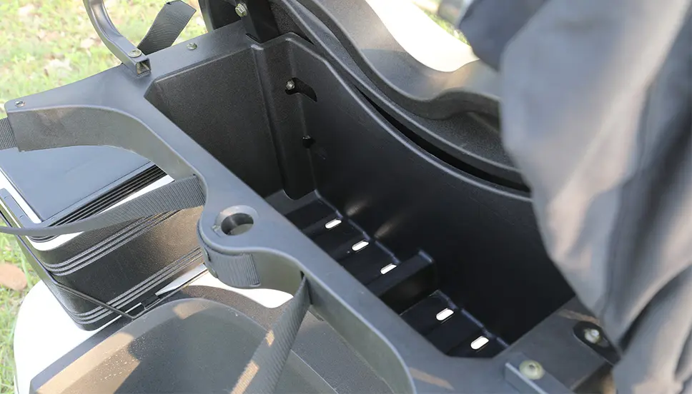 Thoughtfully placed under-seat storage compartments offer ample space for personal items, golf gear, or refreshments. These compartments keep belongings secure and easily accessible during play.